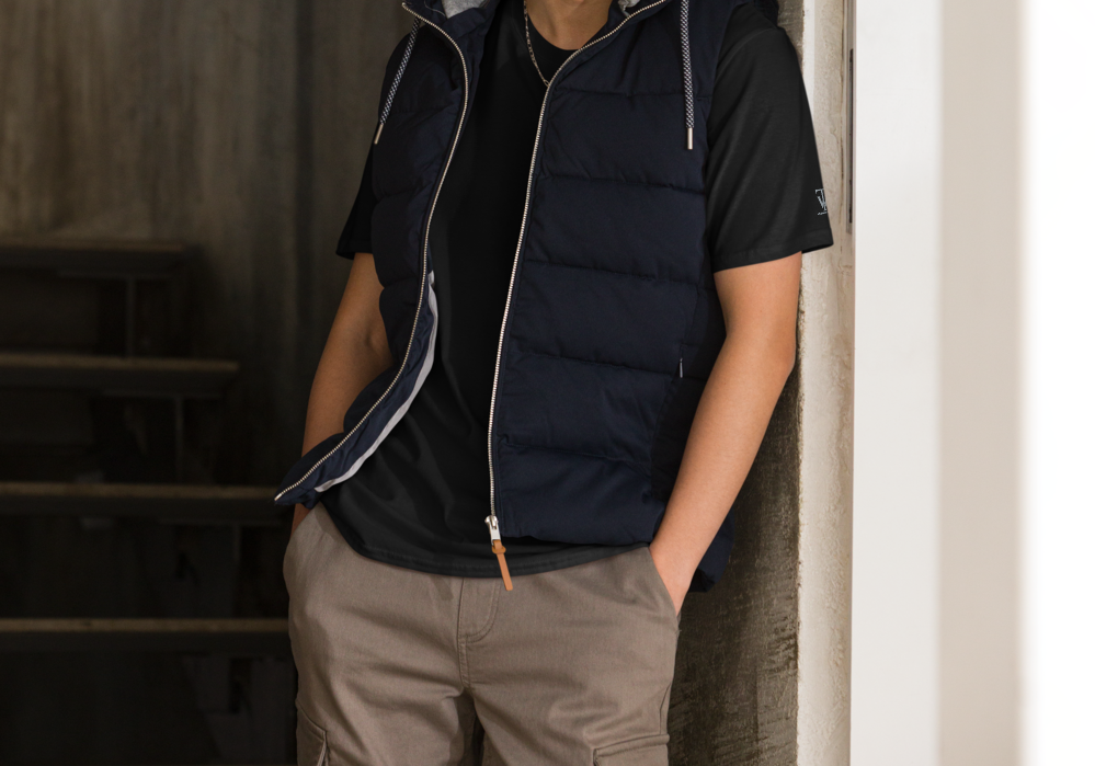002 Series got even simpler. Just one embroidered logo on the left sleeve and that's it.